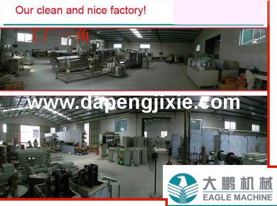 Jinan Eagle Food Machinery Co., LTD located in industry city--Jinan city, capital of Shandong province. We are professional manufacture of food extruder. We mainly deal with the manufacture, research and development of the Extrusion food machinery. According to the client's different requirements, we could offer the whole complete processing line for all kinds of expanded snacks, corn flakes, nutrition powder, and pet food and so on. And our technical assistance will help clients to produce high quality products all the time.As s leading manufacturer of Extrusion food machinery, it is selling and marketing the machines to many countries in the world. We keep improving our machines and upgrade techniques to satisfy the requirements of all the clients. Depending on our rich experience and professional experts on the extruded food industry, we will offer the most suitable and complete program, which assures that your investment will get biggest profit. |