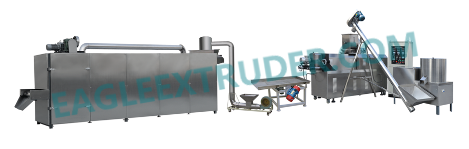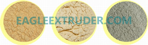 生產線流程:拌粉機—→膨化機—→提升機—→三層烤箱—→風送機—→粉碎機(包裝機)