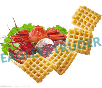4、鍋巴切斷機:根據要求,可以切成平口鍋巴或鋸齒狀鍋巴,還可以通過壓花切斷機做成扎孔鍋巴。